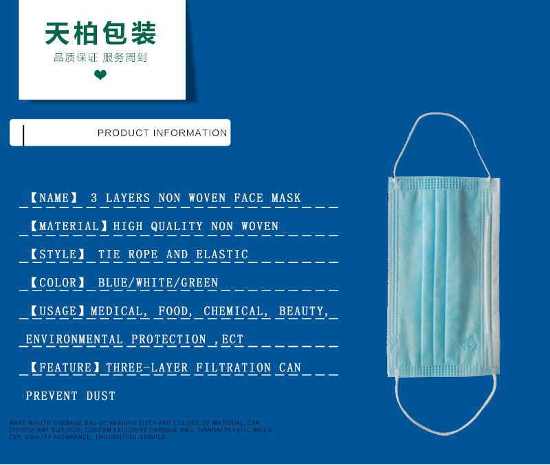 2. We can produce kinds of dispsosable non woven mask according to your requests. If necessary, we can give you some advice for reference;