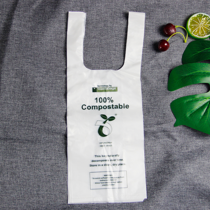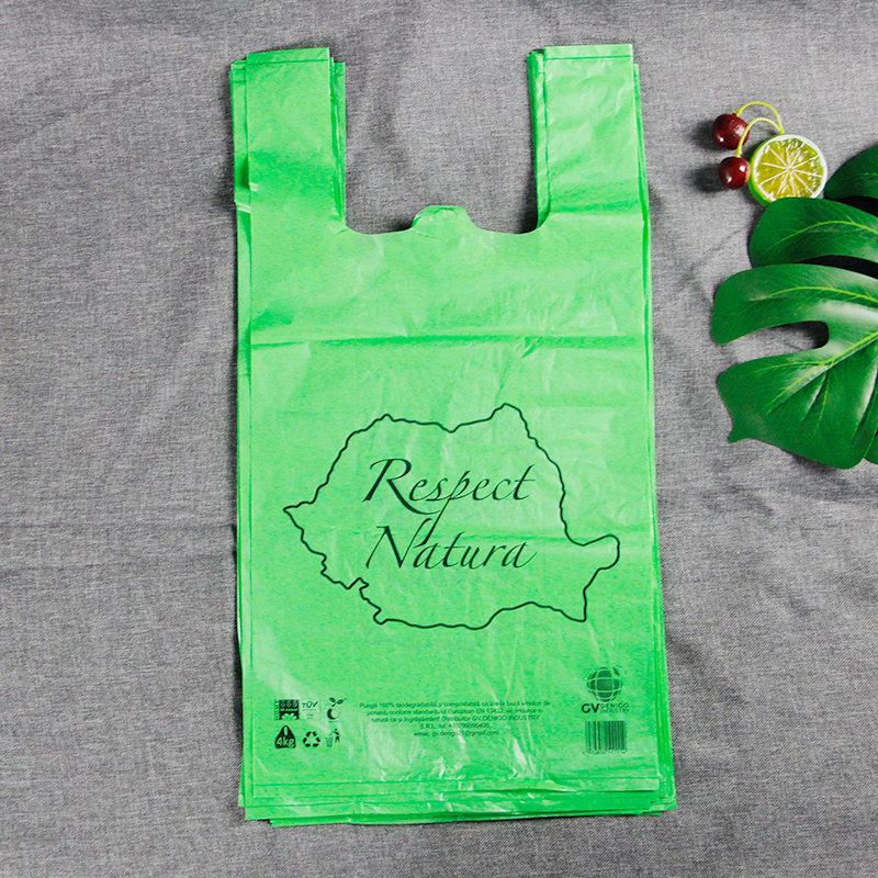 25-30daysTianbai pla t shirt bag is made of pla+pbat. These bags are a eco friendly alternative to plastic bags - guilt free biodegradable grocery bags that do not harm our environment.