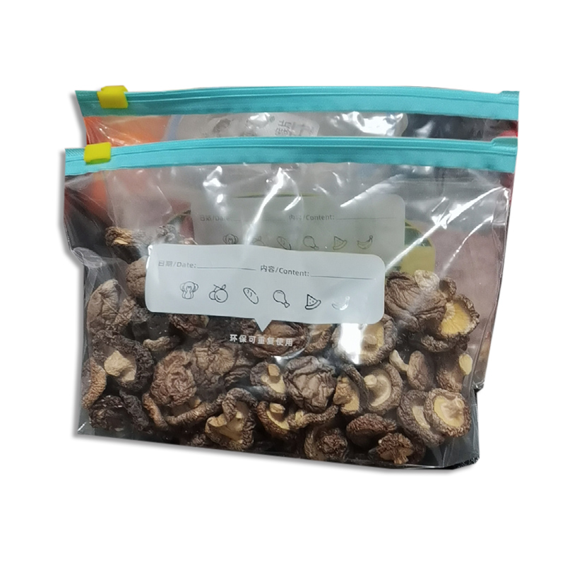 Food-grade slider zipper bags are usually made from PE (polyethylene) material. This material is safe for food. It has no smell or taste, so you can use it directly with any kind of food. The bags are strong and not easy to break. Even if you put in nuts or cookies with sharp edges, the bag stays in one piece.
