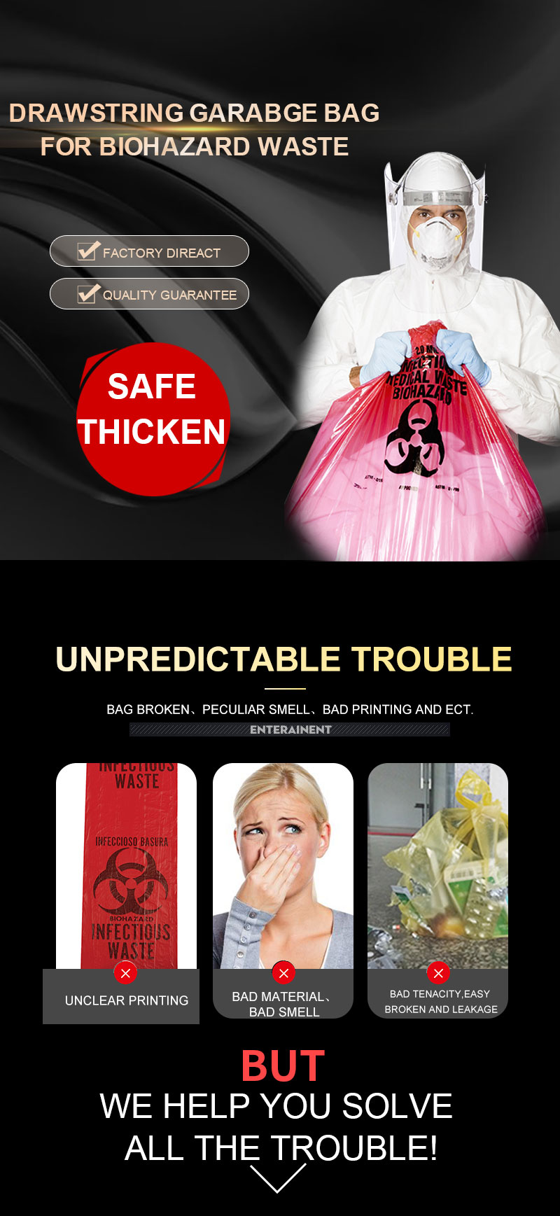 1. Please kindly inform us the material, size, thickness, color and other special requirements of medical waste bag so that we can give you special offer;