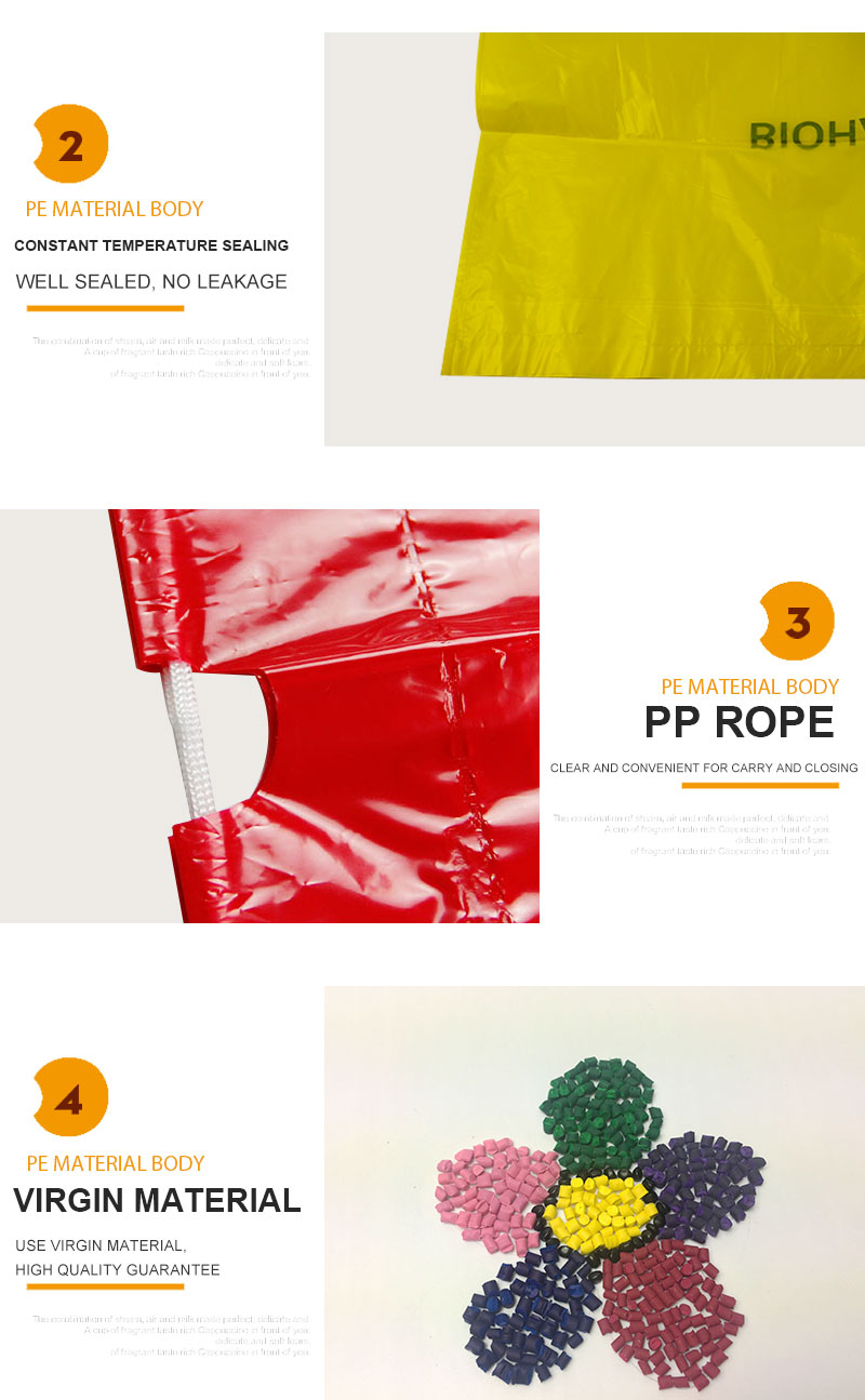2. We can produce kinds of medical waste bags according to your requests. If necessary, we can give you some advice for reference;