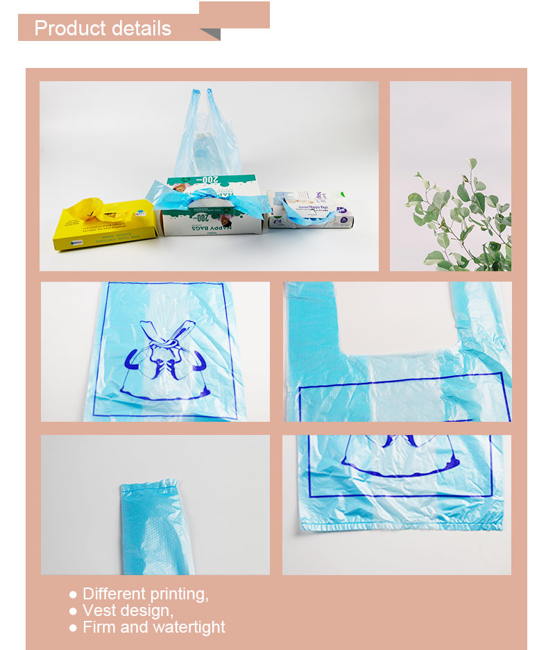 The baby poop garbage bag can help your baby go to the toilet for training. There are various styles, drawstring style, vest style, and rubber band lock style, which can add absorbent pads. Convenient and practical, welcome to inquire.