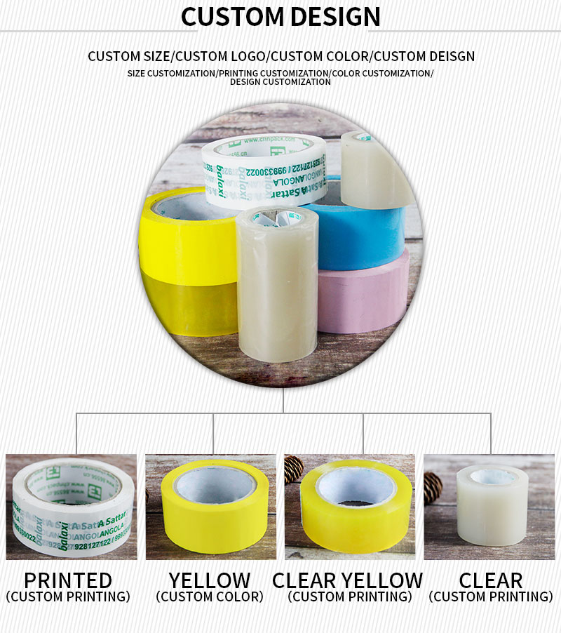 4. Easy to Use - The shipping tape can perfectly fit into the standard 2" tape gun. And here is a small tip for you, you can bend the very end of the tape to make a stab for quick open. 5. Customization - The packing tape can be made as your size and logo printing. Also the package can also bemade as your requests, such as 12-Pack or 36-Pack options. 6. MULTIPURPOSE PACKAGING TAPE: The carton sealing tape can be used not only for home removals, shipping and mailing, for storing and organizing household items, but also for anything that one expects from a householdmultipurpose tape. This moving and packing tape will always come in handy.
