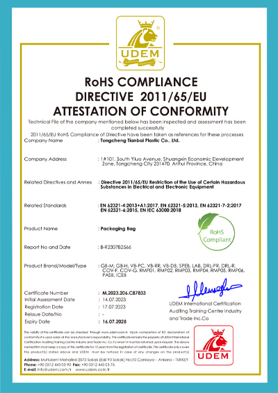 This shows that our products meet the EU market sales standards, which ensures the environmental sustainability of the products and also reflects our commitment to the production of safe and environmentally friendly products. You can rest assured when you choose our products.