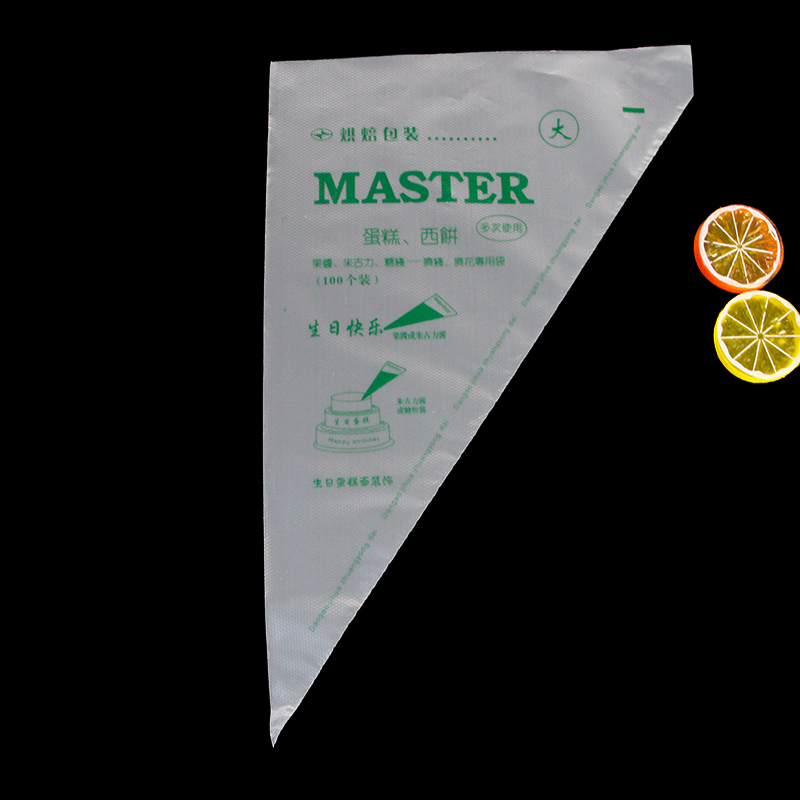 Pastry bag-A flexible bag from which icing is forced through a small nozzle to make various designs of piping. We can produce triangle, trapezoid and other shapes of bags, also, we can also customize the printing and packaging.
