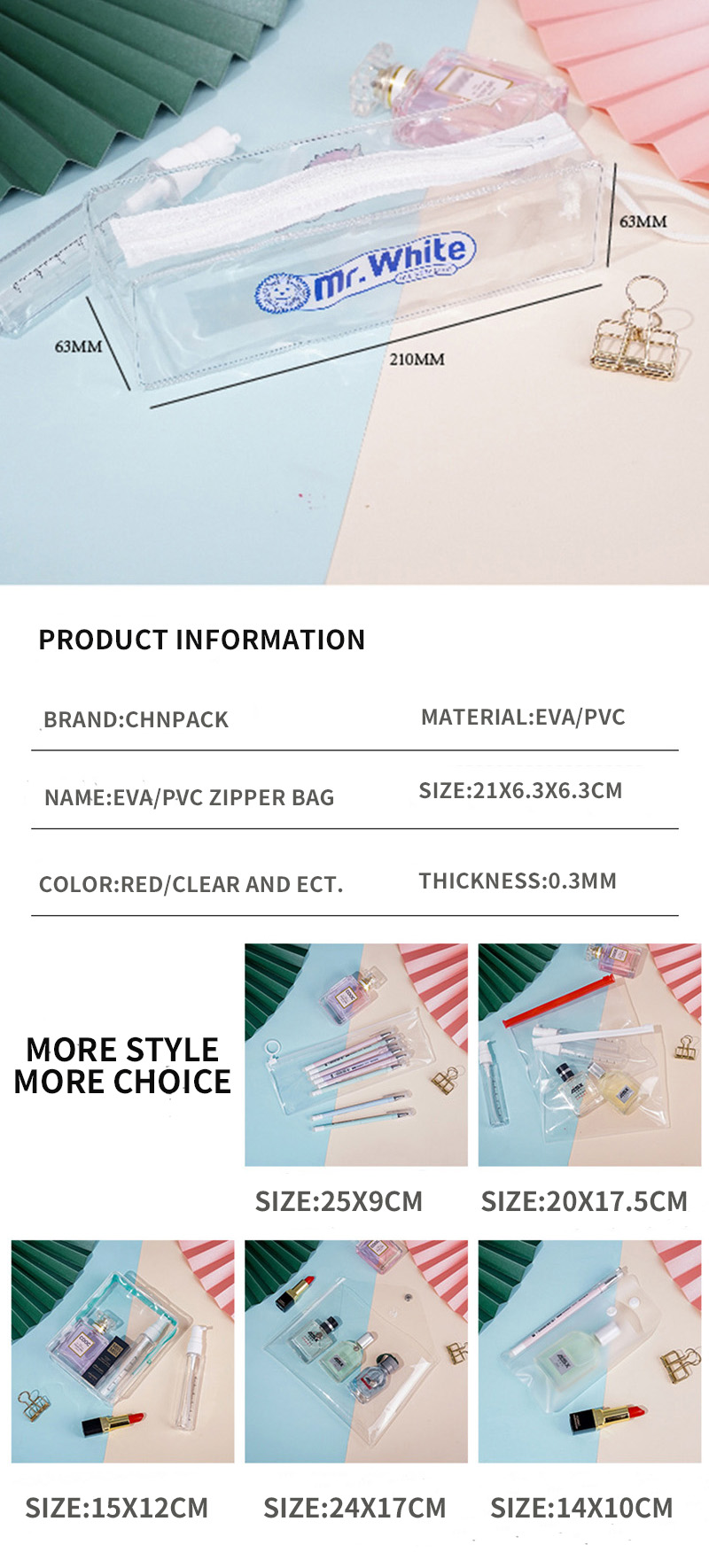 1. Please kindly inform us the material, size, thickness, color and other special requirements of pvc zipper bag so that we can give you special offer;