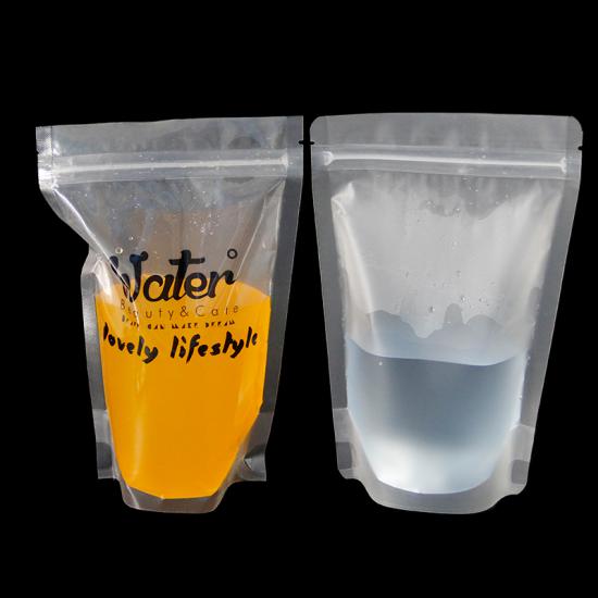 The stand-up drink pouch can stand on its own, Packaging juice is very convenient, zipper strip design, good sealing, the liquid is not easy to spill. Custom sizes are available, we can also produce styles with holes, convenient to carry.