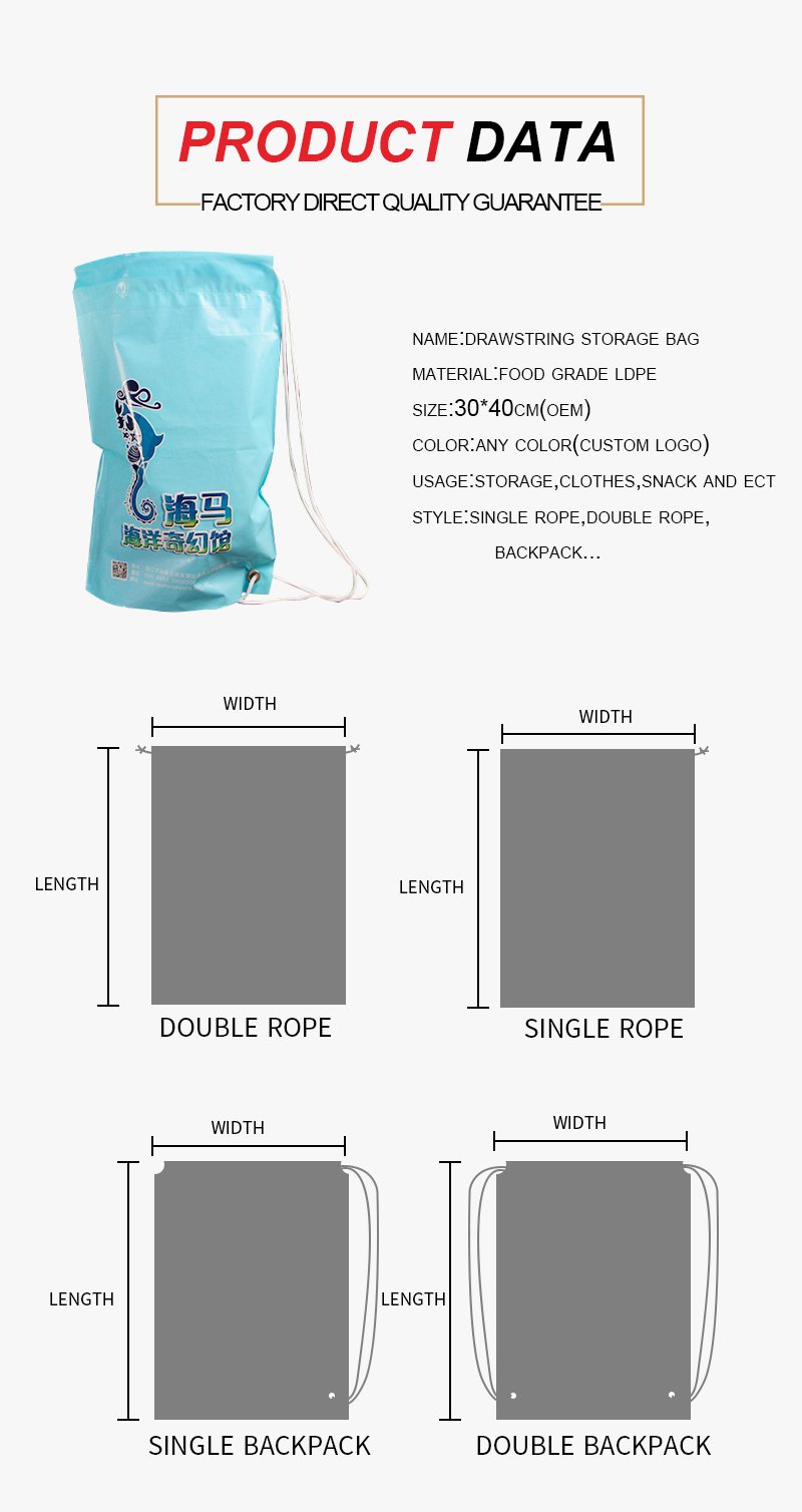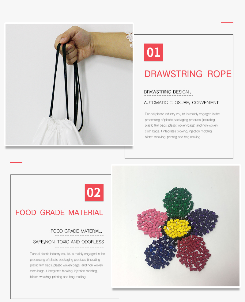 This product can be used for storing articles, packing gifts and other purposes.  The style of drawstring is more convenient to carry, easily help you solve the problem of carrying trouble.  About the material.  We choose food grade materials, which are more load-bearing, more flexible and less prone to leakage.
