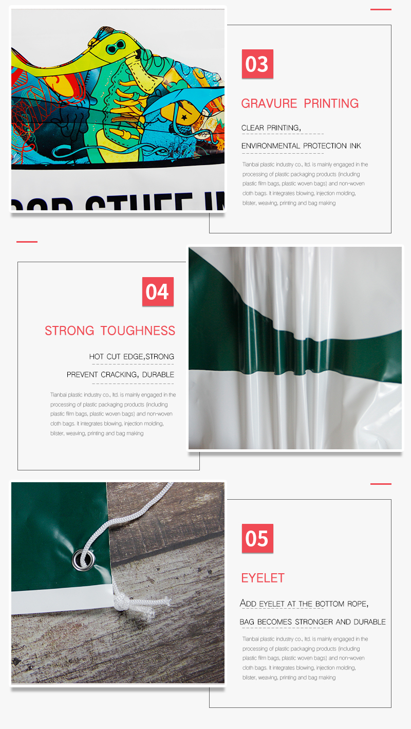 Drawstring shopping bag can be portable or can be shoulder; Large capacity, strong storage;,Can be customized printing, color arbitrary.