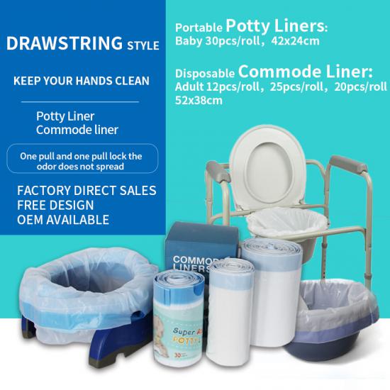 2. We can produce kinds of drawstring potty liner according to your requests. If necessary, we can give you some advice for reference;