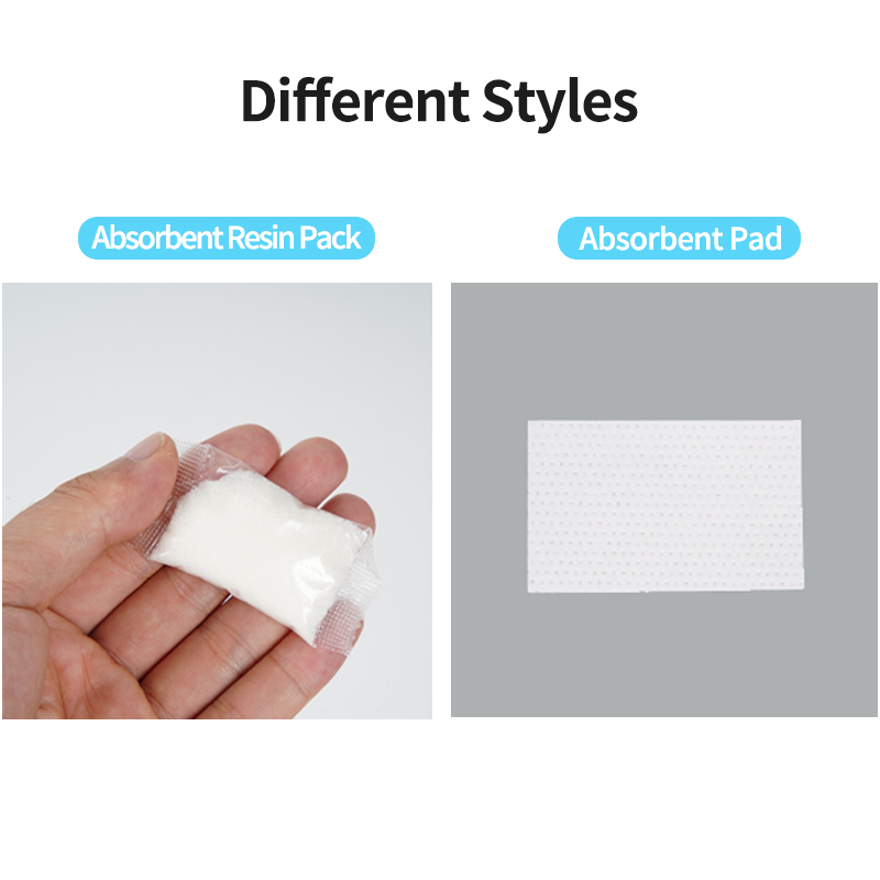 | Material | PE, IXPE; absorbent pad or absorbent resin pack |