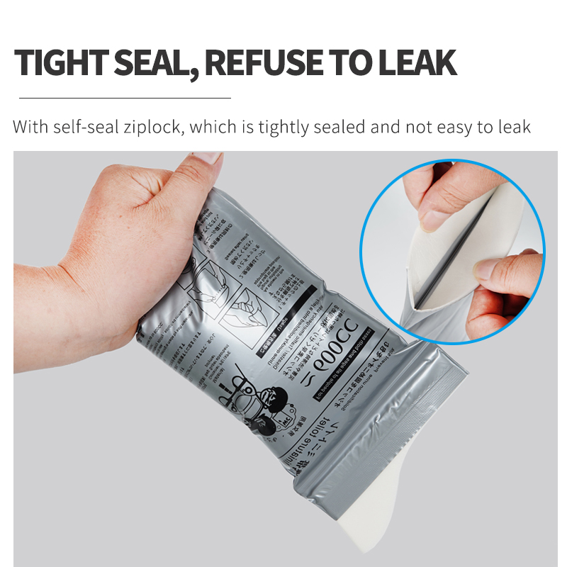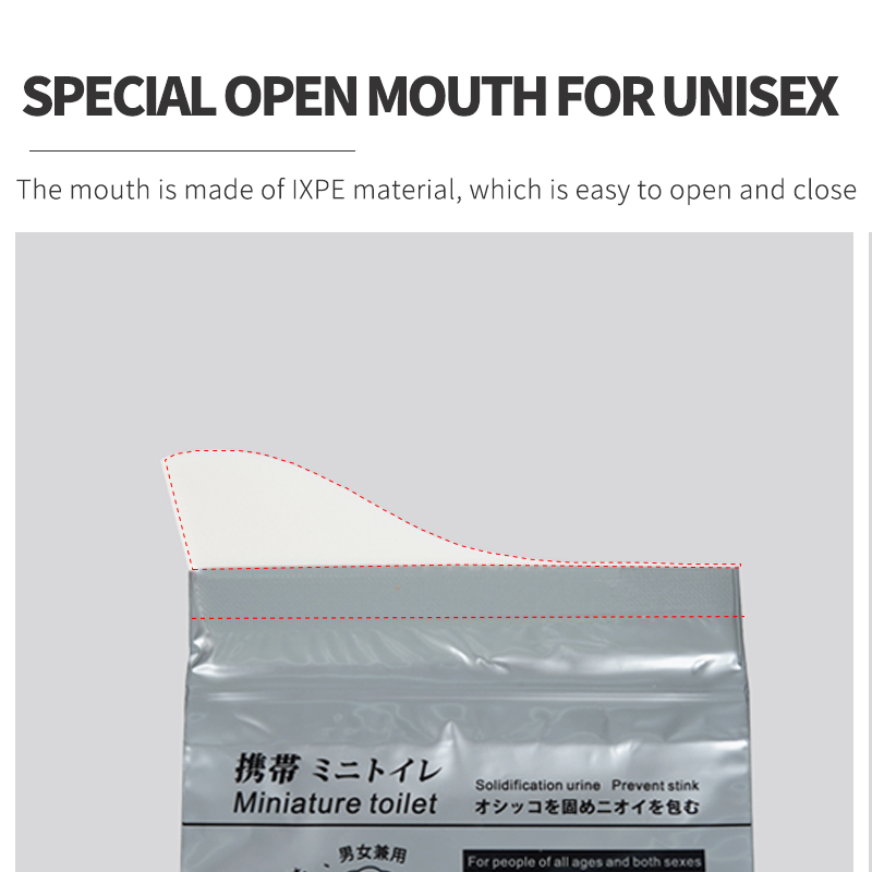 The disposable portable emergency urine bag is made of ixpe foam foam material at the mouth and PE material at the body, which is not easy to break and easy to use. The self-sealing strip at the mouth of the bag is designed to prevent liquid leakage, which is safer and more secure. Large capacity, men, women and children to meet your various needs!
