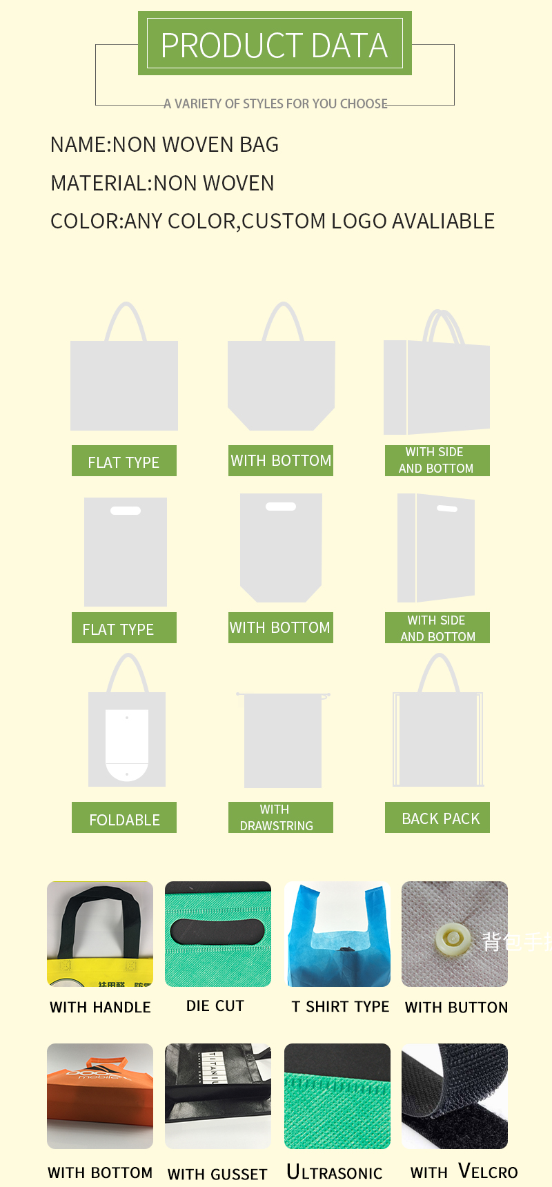 2. We can produce kinds of non woven tote bag according to your requests. If necessary, we can give you some advice for reference;
