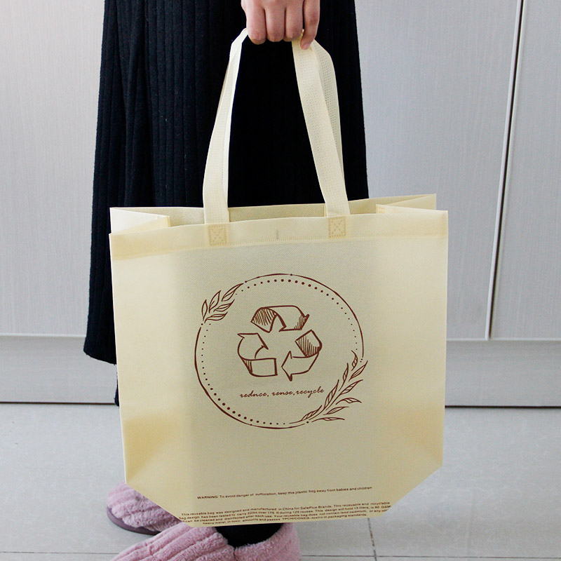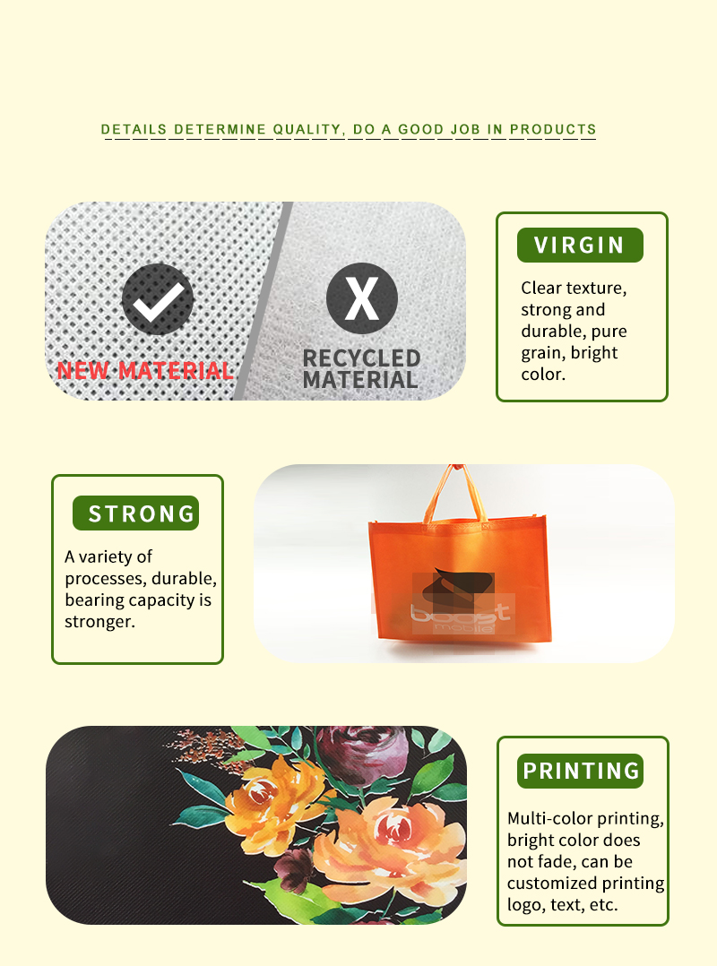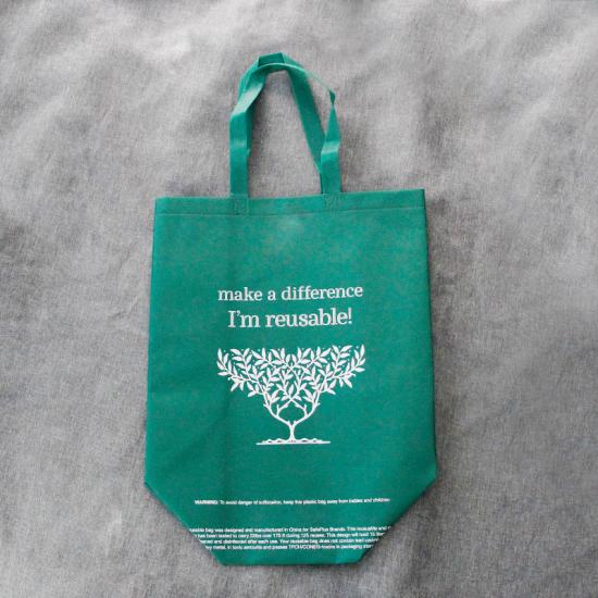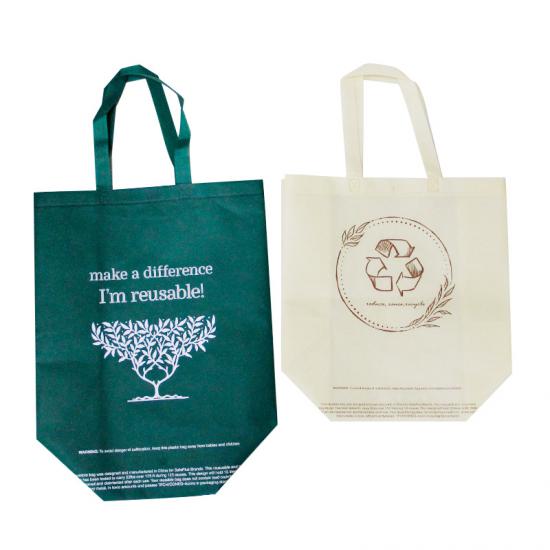 Made of polyester non-woven fabric, durable light weight material, with strong handles, portable, strong, durable and reusable.
