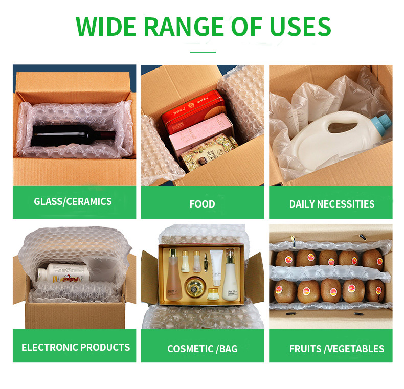 Air column film has a wide range of applications. It is suitable for packaging and filling of various products, and the procurement cost is low, which can help enterprises to save logistics costs.