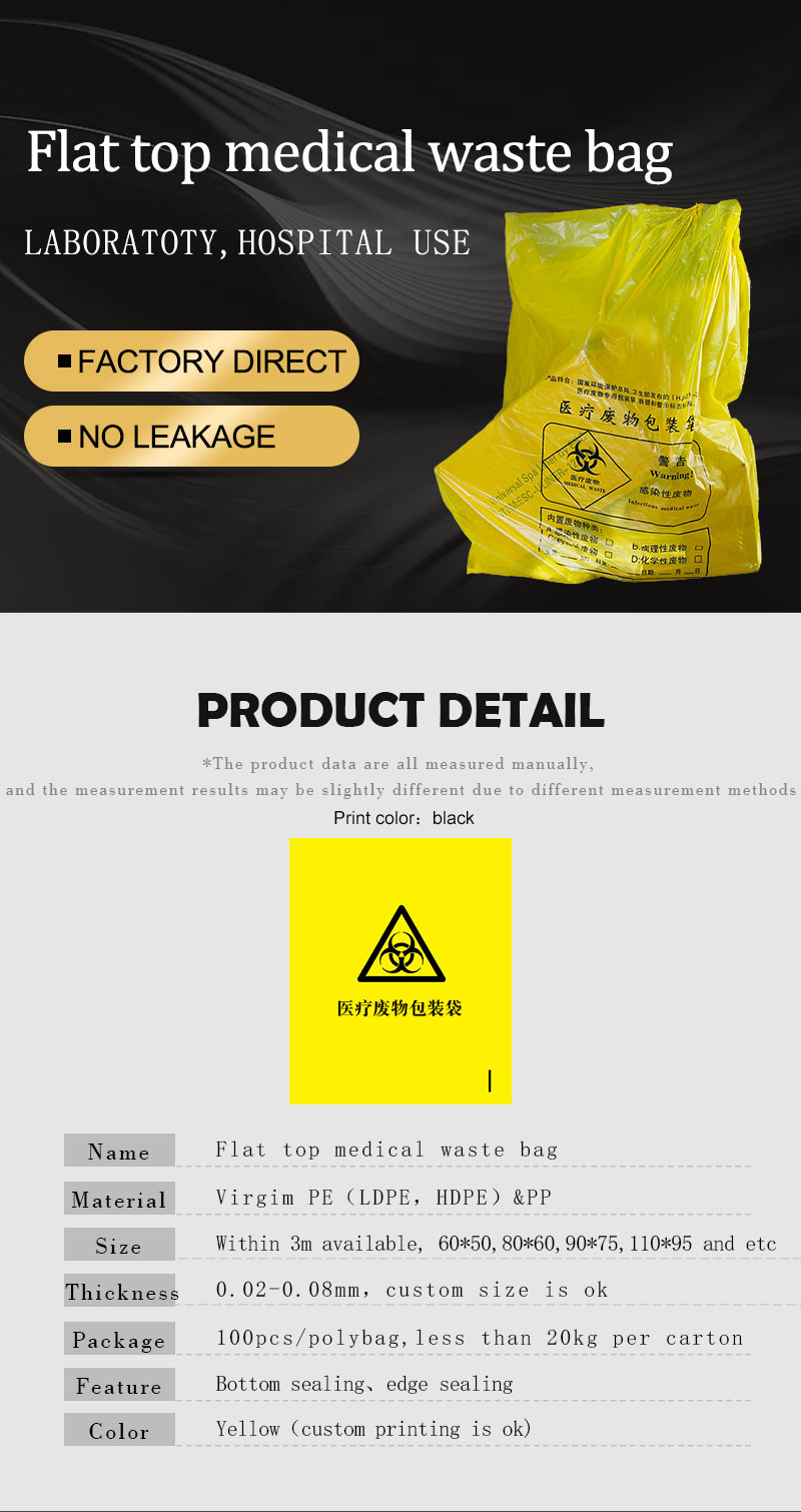 1. Please kindly inform us the material, size, thickness, color and other special requirements of medical waste bag so that we can give you special offer;