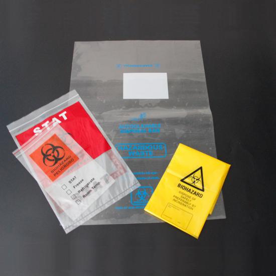 | Specimen bag | Medical waste bag with adhensive | T shirt medical waste bag | Drawstring medical waste bag |