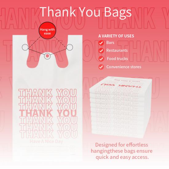 CONVENIENT HANDLE: To prevent tearing or breakage during use, our T-shirt bags feature reinforced handles and sturdy construction.
