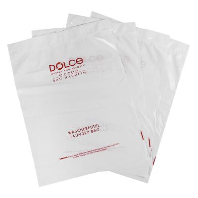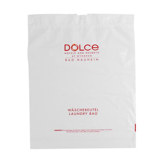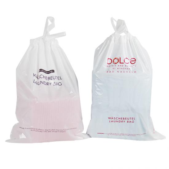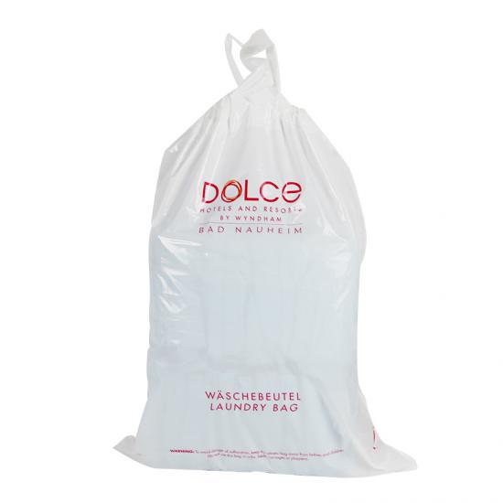 Made with 100% virgin low density polyethylene and designed for laundry service, this laundry bag features plastic drawstring enclosure and durable poly construction. The draw tape top allows for a secure closure at the top of the bag while providing a convenient and comfortable handle. These white plastic bags give an elegant look yet are tough and strong. These poly drawstring bags are heavy-duty, flexible, and biodegradable.