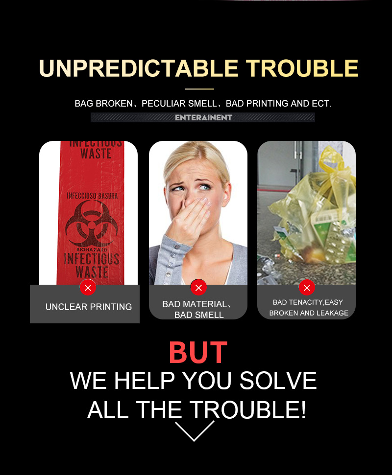 2. We can produce kinds of medical waste bags according to your requests. If necessary, we can give you some advice for reference;