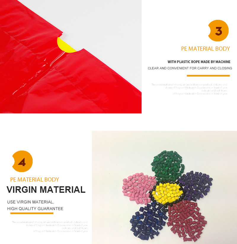 * Eco-friendly material: PO, PE, OPP, PP, PVC, CPE, PO/PE and composite material, non-woven fabric,pp woven material, other eco-friendly biodegradable or compotable material.All comply with ISO /TUV certification.