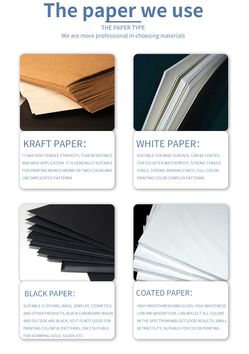 Paper bags are reusable and disposable, non-toxic, environmentally friendly. Food-grade materials can be safely used to store or carry dry food.