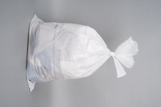 This is a biodegradable plastic laundry bag with a tear strip for easy tying.