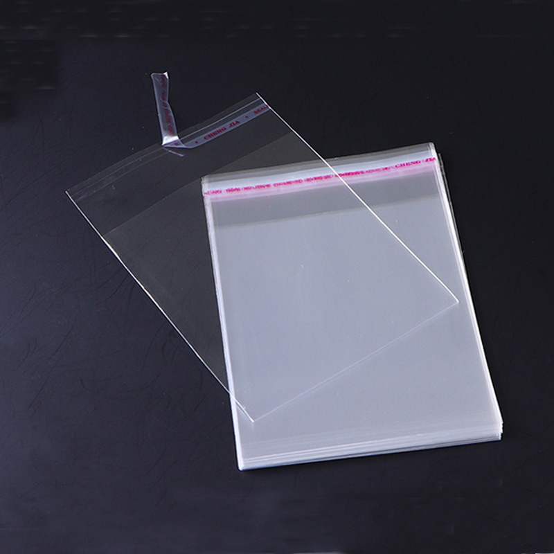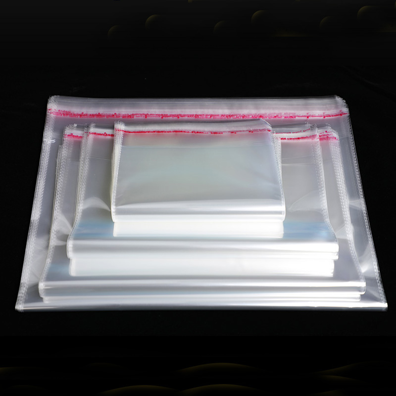 Self adhesive bags can be made out of clear low density polyethylene or polypropylene (PP) for high clarity. OPP adhesives pouch comes in custom sizes and printing option is also available. It is an envelope style bag with a re-sealable or tampered proof tape on the lip of the bag.
